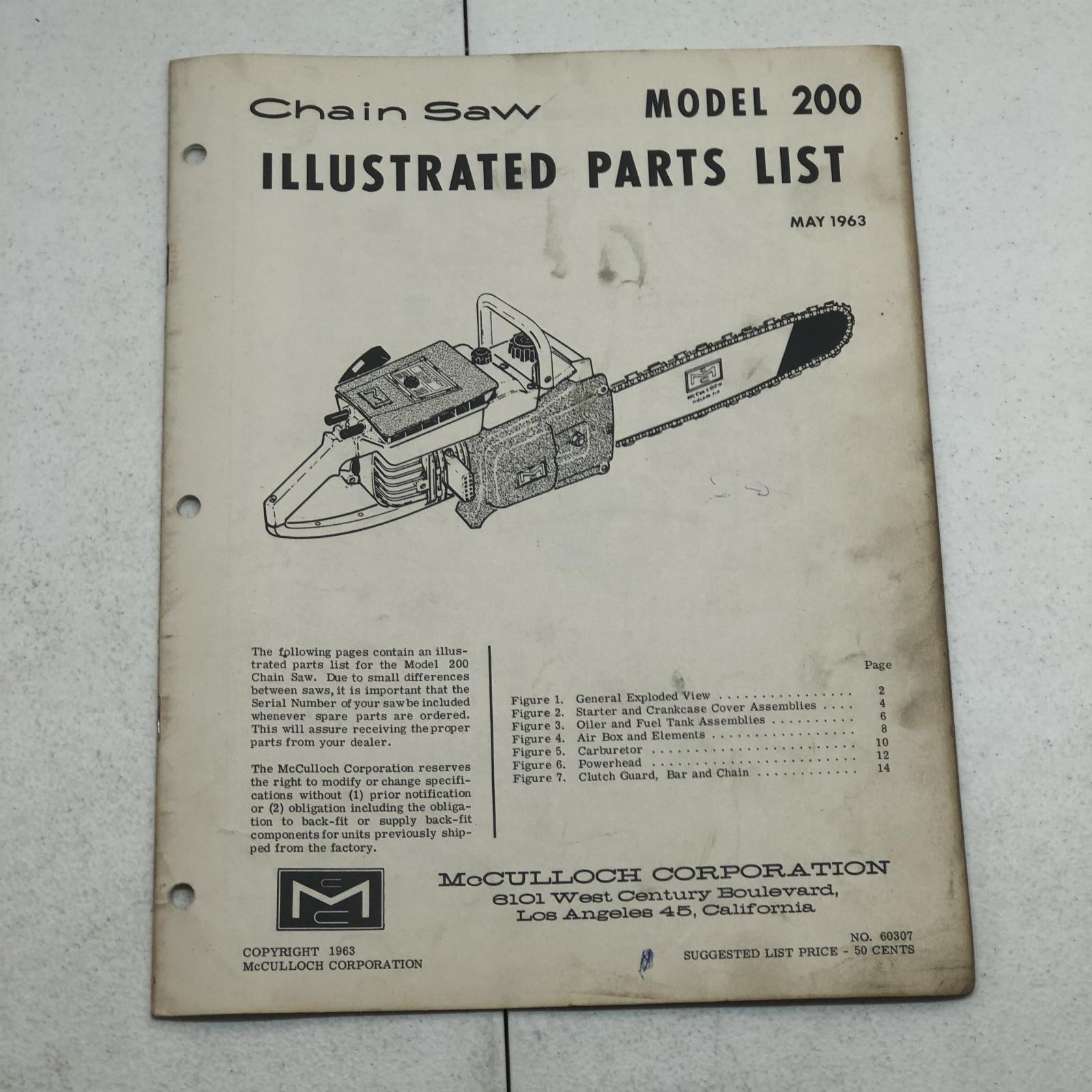 Mcculloch Model 200 Chainsaw Illustrated Parts Manual