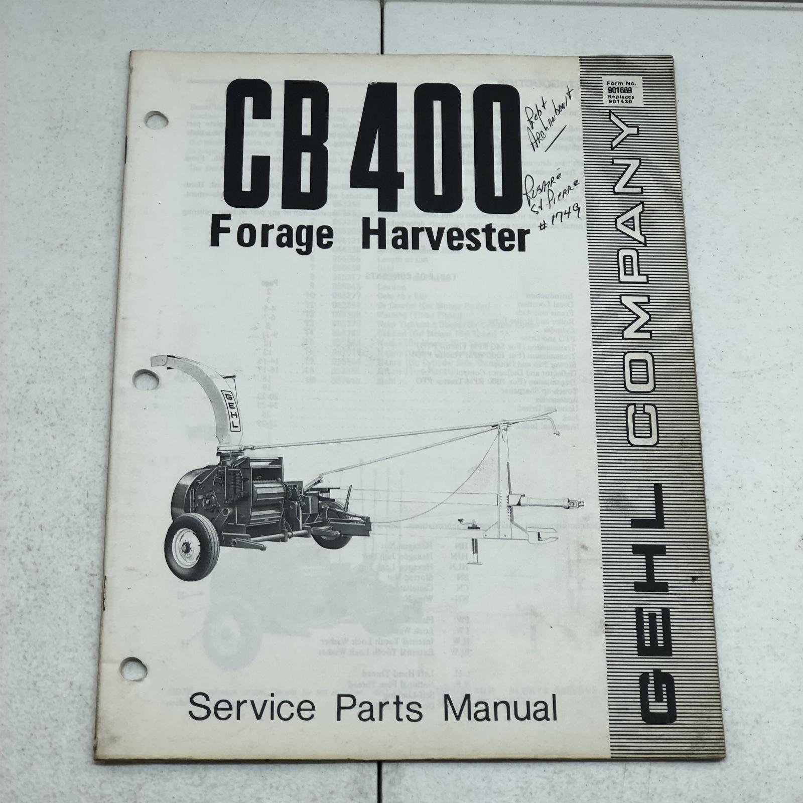 Gehl CB400 Forage Harvester Service Parts Manual