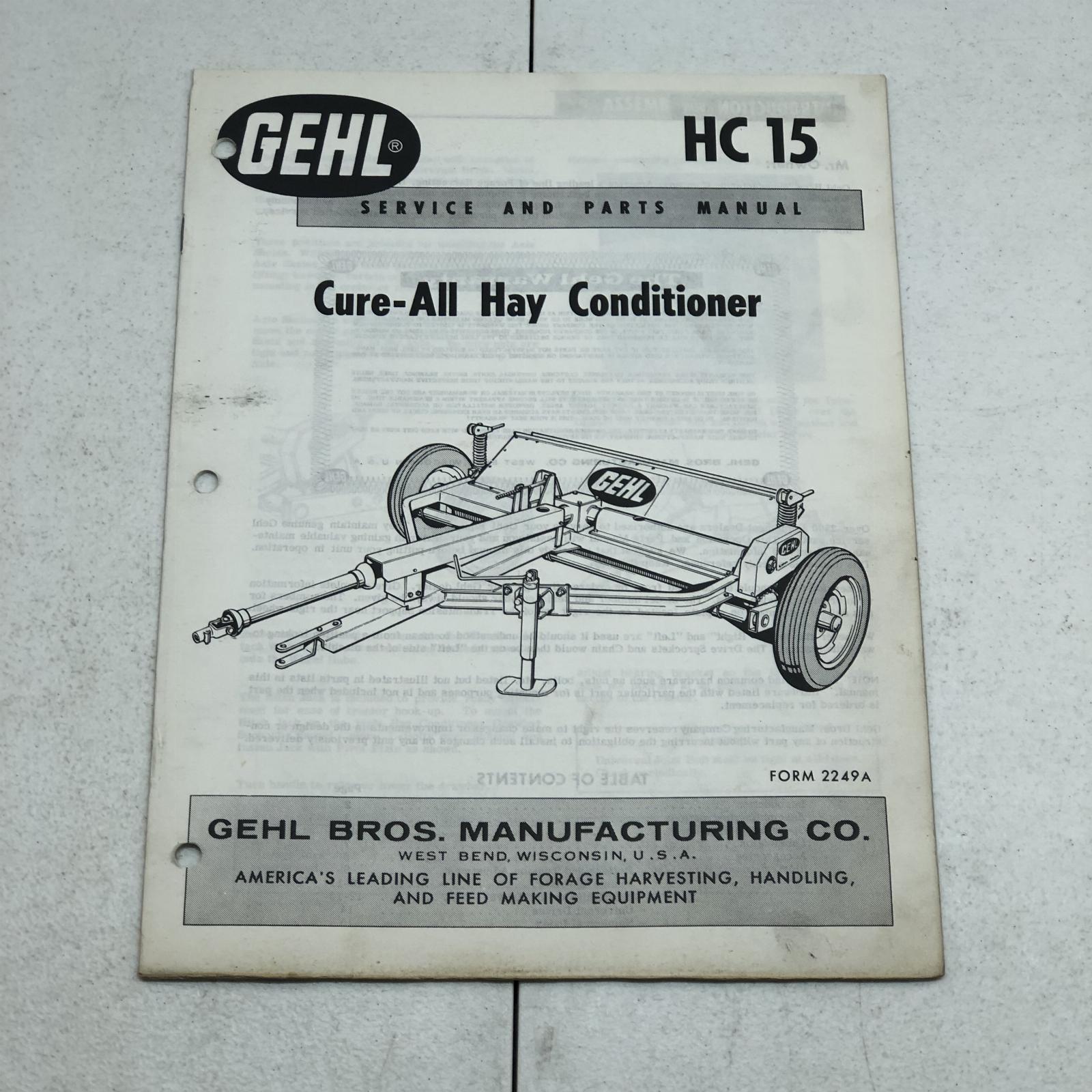Gehl HC15 Cure-all Hay Conditioner Service & Parts Manual
