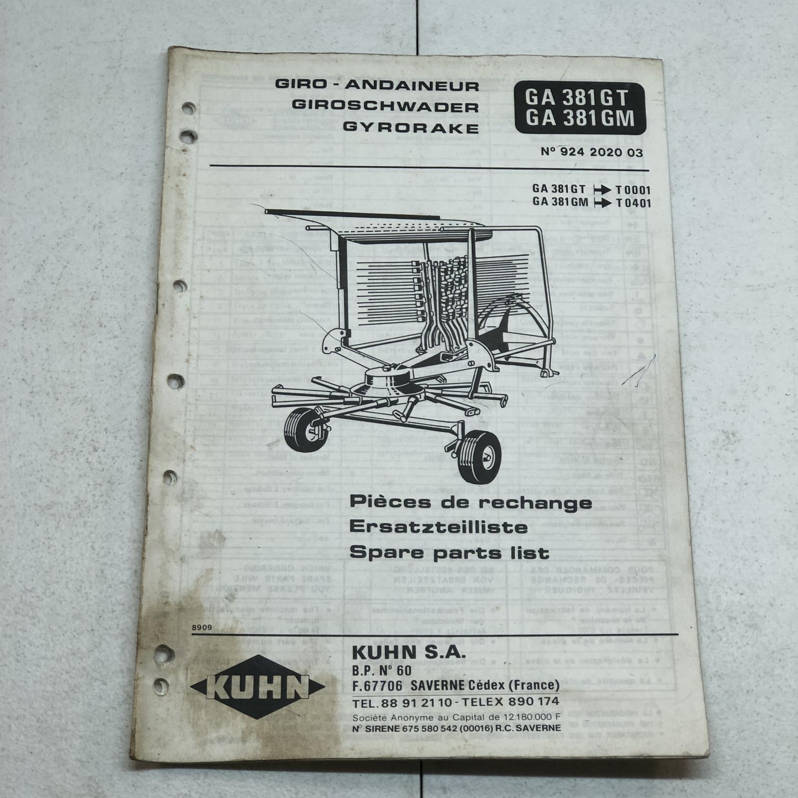 Kuhn GA381GT GA381GM Gyrorake Hay Rake Parts Manual