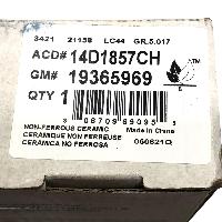 GM 19365969 AC Delco 14D1857CH Disc Brake Pad Set — Genuine OEM This Item May Interchange With The Following: 10-1857 10518570 13595651 14D1857CH 17-1857 17-1915 171-1170 17D1857CH 39021615 9085 9085-D1857 9085-D1915 BC1857 BE1857 BE1857H CFC1857 D1857 D1915 EHT1857H EHT1915H SS9085X TPC1857