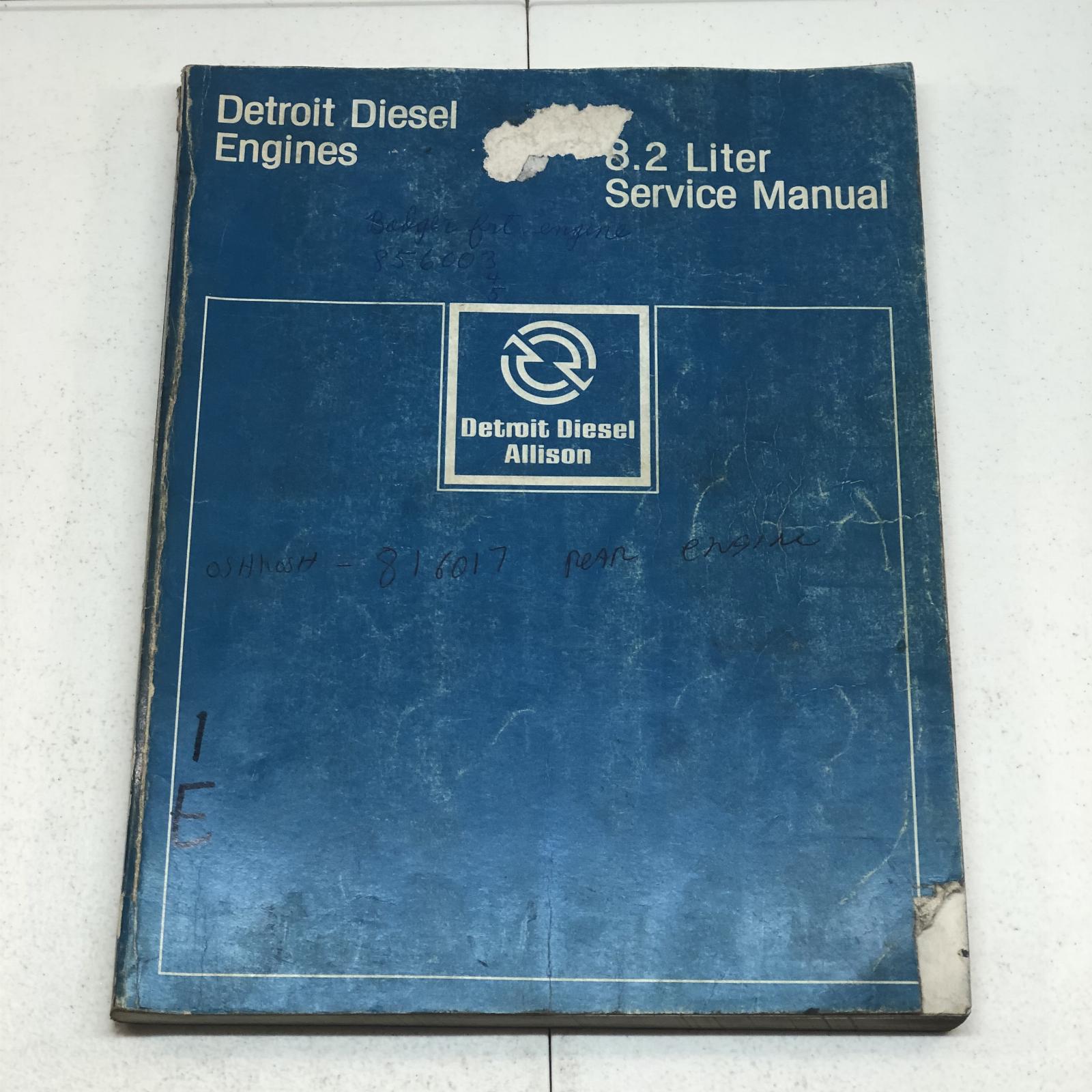 Detroit Diesel 8.2L Engine Workshop Service Repair Manual The cover is partially de-attached from the manual and a few pages may be loose as well. SEE PHOTOS. Part No. 6SE421 1985 Edition This OEM Manual is the REAL DEAL and not a reprint. I recently purchased a huge lot of manuals from a DOT Repair Facility. This manual has been used in a repair shop and may have dirt, grease, fingerprints, writing, and smudging on some pages.