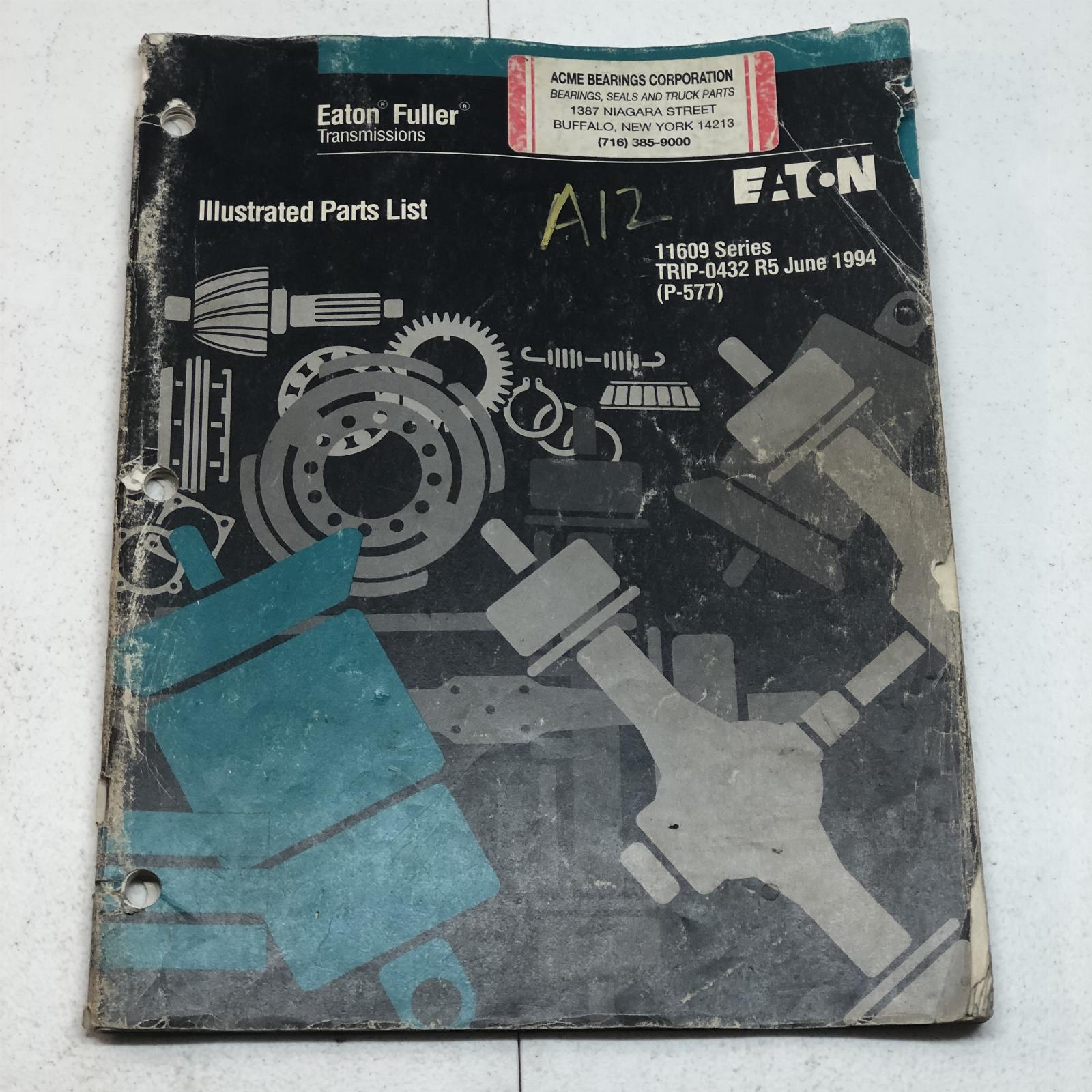 Eaton Fuller 11609 Series Transmission Parts Manual Part No. TRIP-0432 R5 June 1994 Edition This OEM Manual is the REAL DEAL and not a reprint. I recently purchased a huge lot of manuals from a DOT Repair Facility. This manual has been used in a repair shop and may have dirt, grease, fingerprints, writing, and smudging on some pages.