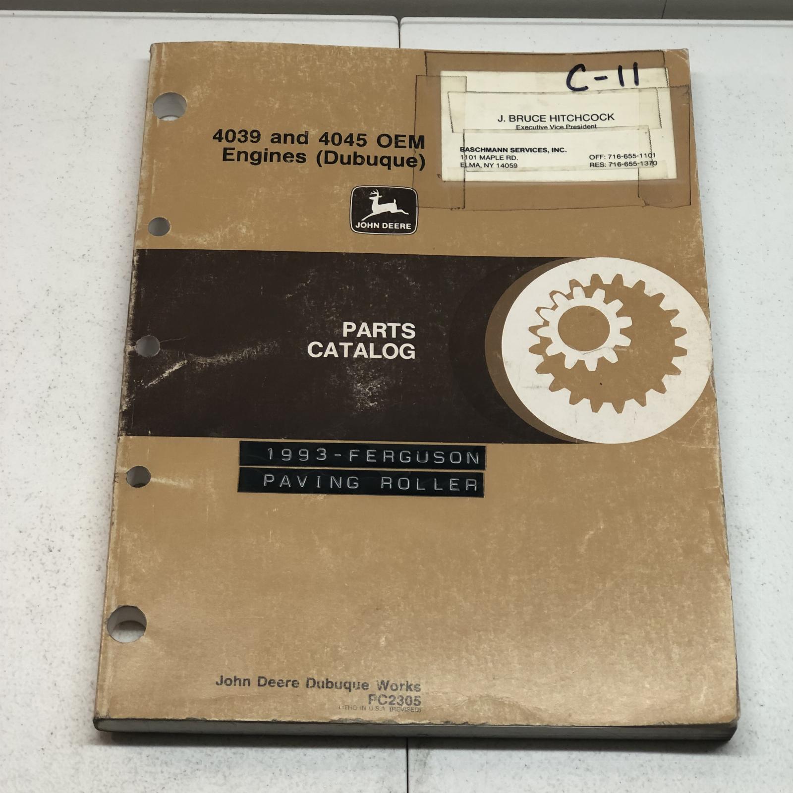 John Deere 4039 & 4045 OEM Engines (Dubuque) Parts Manual Part No. PC2305 1991 Edition This OEM Manual is the REAL DEAL and not a reprint. I recently purchased a huge lot of manuals from a DOT Repair Facility. This manual has been used in a repair shop and may have dirt, grease, fingerprints, writing, and smudging on some pages.
