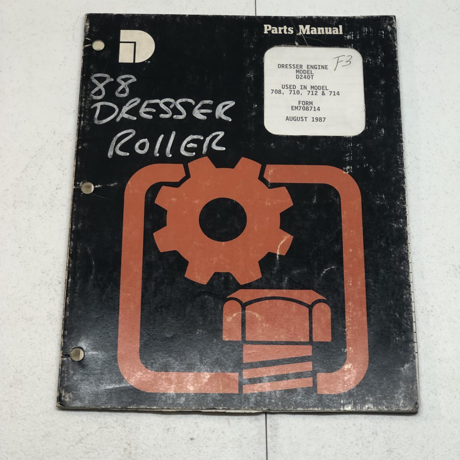 Dresser Engine D240T Used In Model 708 710 712 714 Roller Parts Manual Part No. EM708714 August 1987 Edition This OEM Manual is the REAL DEAL and not a reprint. I recently purchased a huge lot of manuals from a DOT Repair Facility. This manual has been used in a repair shop and may have dirt, grease, fingerprints, writing, and smudging on some pages.