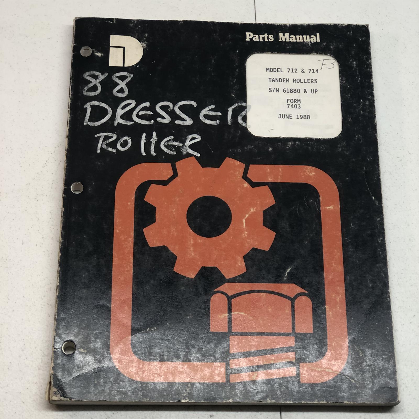 Dresser Model 712 & 714 Tandem Roller Parts Manual Part No. 7403 June 1988 Edition This OEM Manual is the REAL DEAL and not a reprint. I recently purchased a huge lot of manuals from a DOT Repair Facility. This manual has been used in a repair shop and may have dirt, grease, fingerprints, writing, and smudging on some pages.