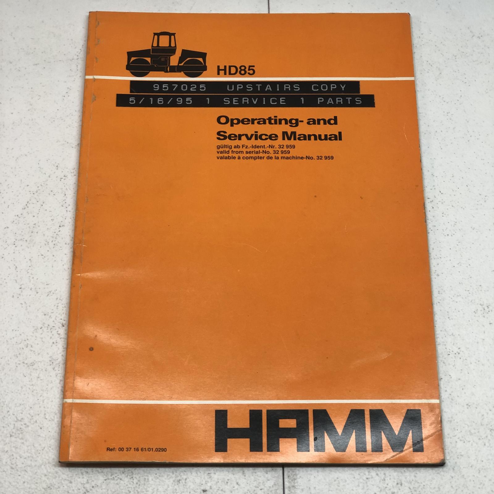 Hamm HD85 Roller Operators & Workshop Service Repair Manual I have 4 of these manuals. They are all pictured (see last photo). This sale is for 1 Manual only. You will receive 1 of the manuals pictured. Part No. 32-959 1995 Edition This OEM Manual is the REAL DEAL and not a reprint. I recently purchased a huge lot of manuals from a DOT Repair Facility. This manual has been used in a repair shop and may have dirt, grease, fingerprints, writing, and smudging on some pages.
