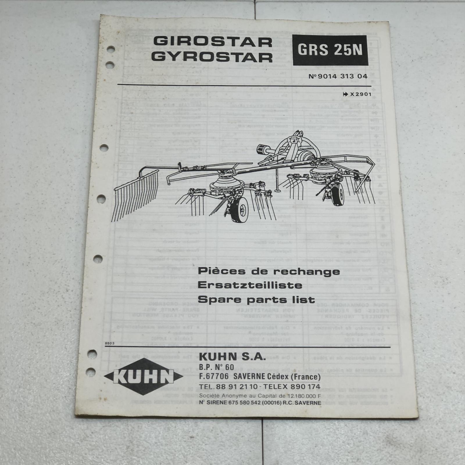 Kuhn Gyrostar GRS25N Hay Tedder Parts Manual