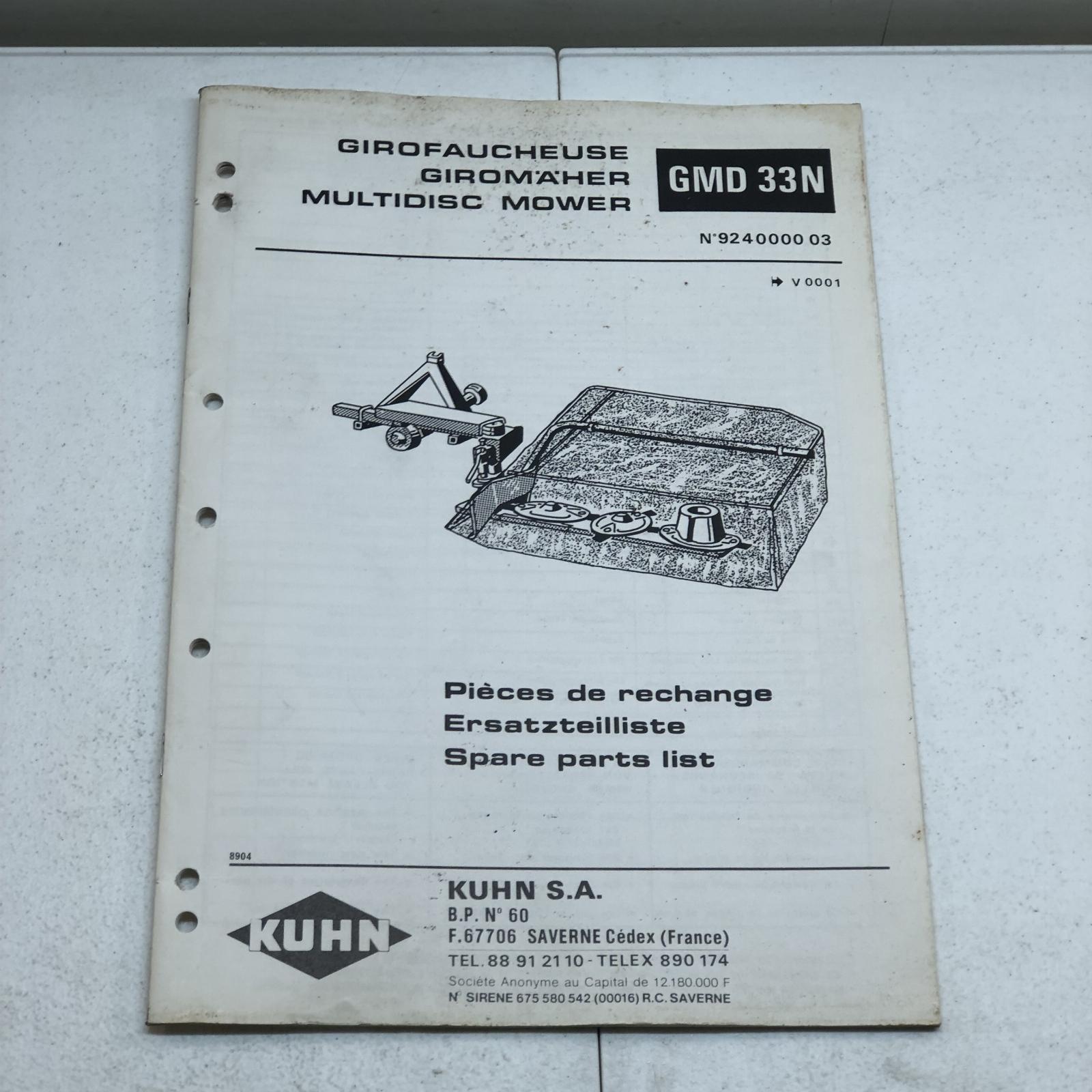 Kuhn Multidisc Mower Model GMD33N Parts Manual