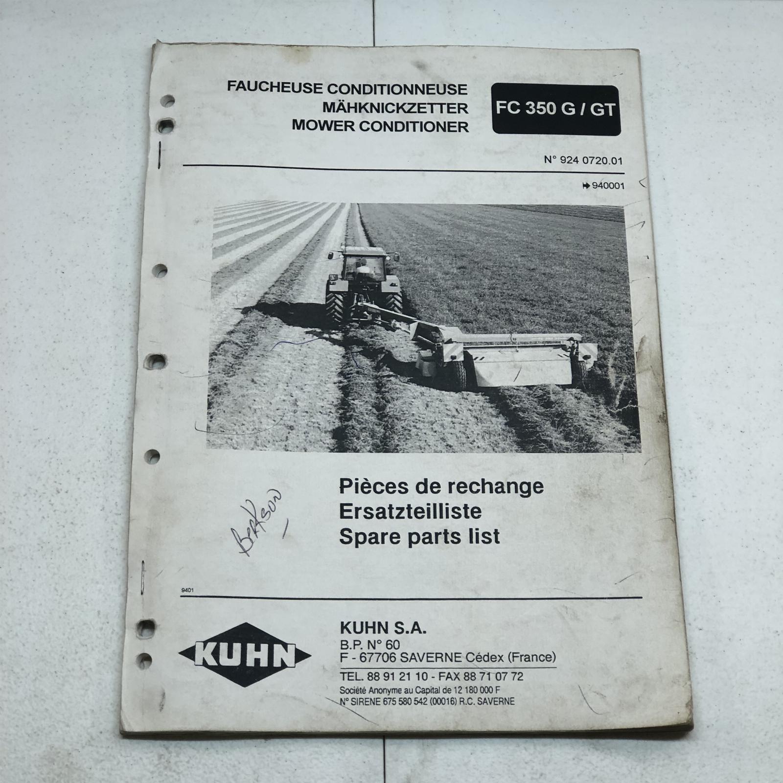 Kuhn Mower Conditioner Model FC350G FC350GT Parts Manual