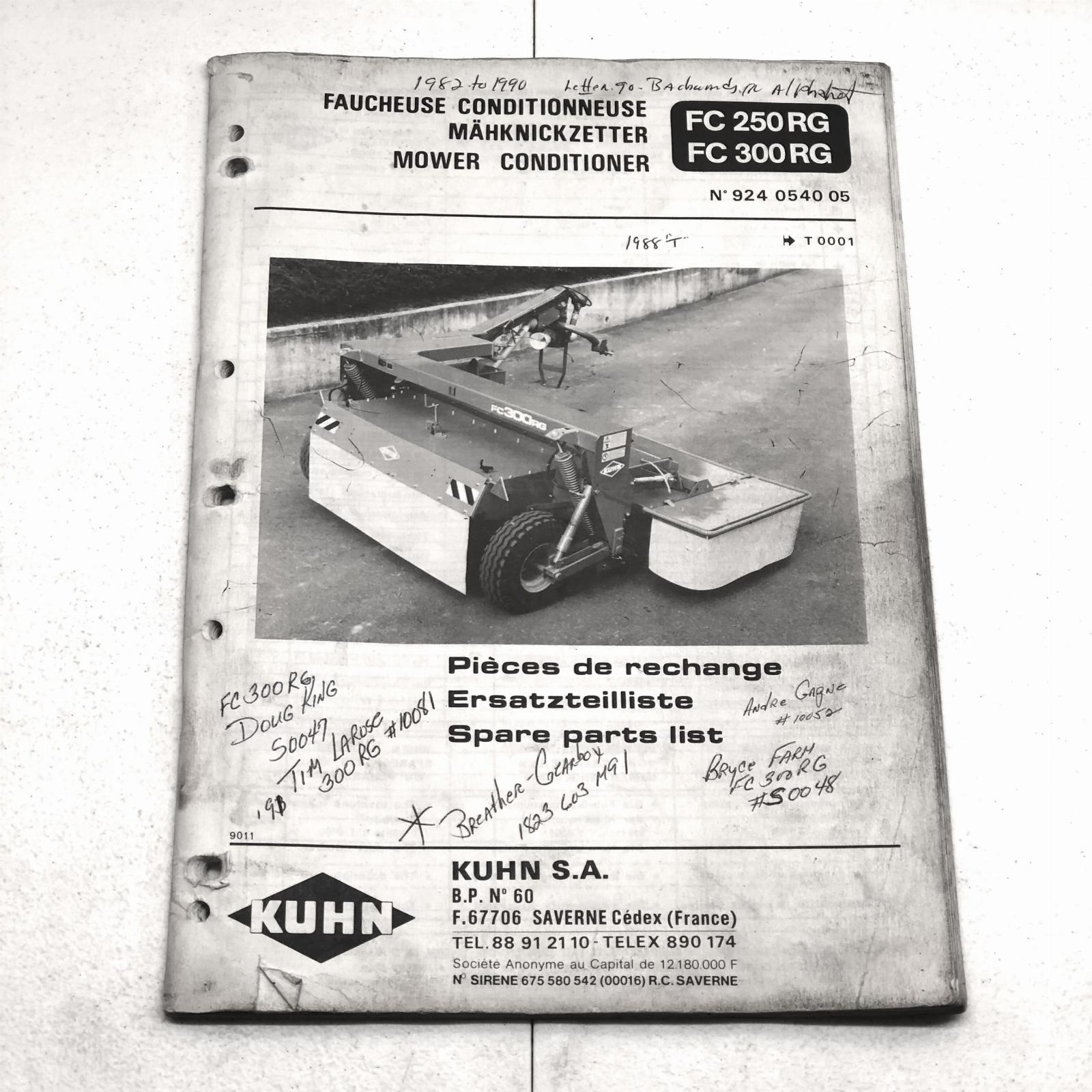 Kuhn Mower Conditioner Model FC250RG FC300RG Parts Manual