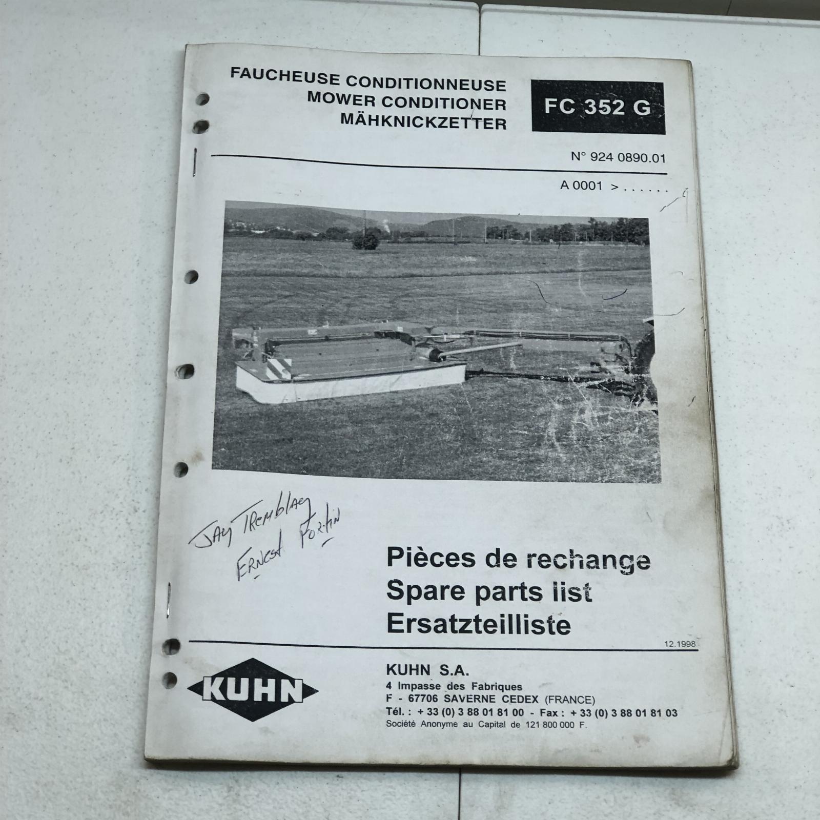Kuhn Mower Conditioner Model FC352G Parts Manual