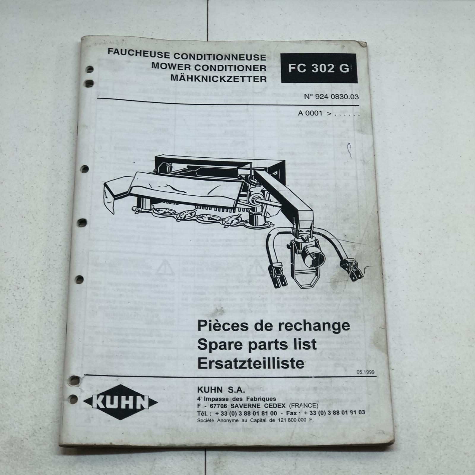 Kuhn Mower Conditioner Model FC302G Parts Manual