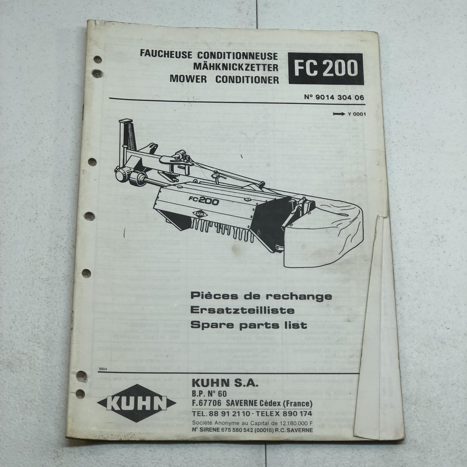 Kuhn Mower Conditioner Model FC200 Parts Manual