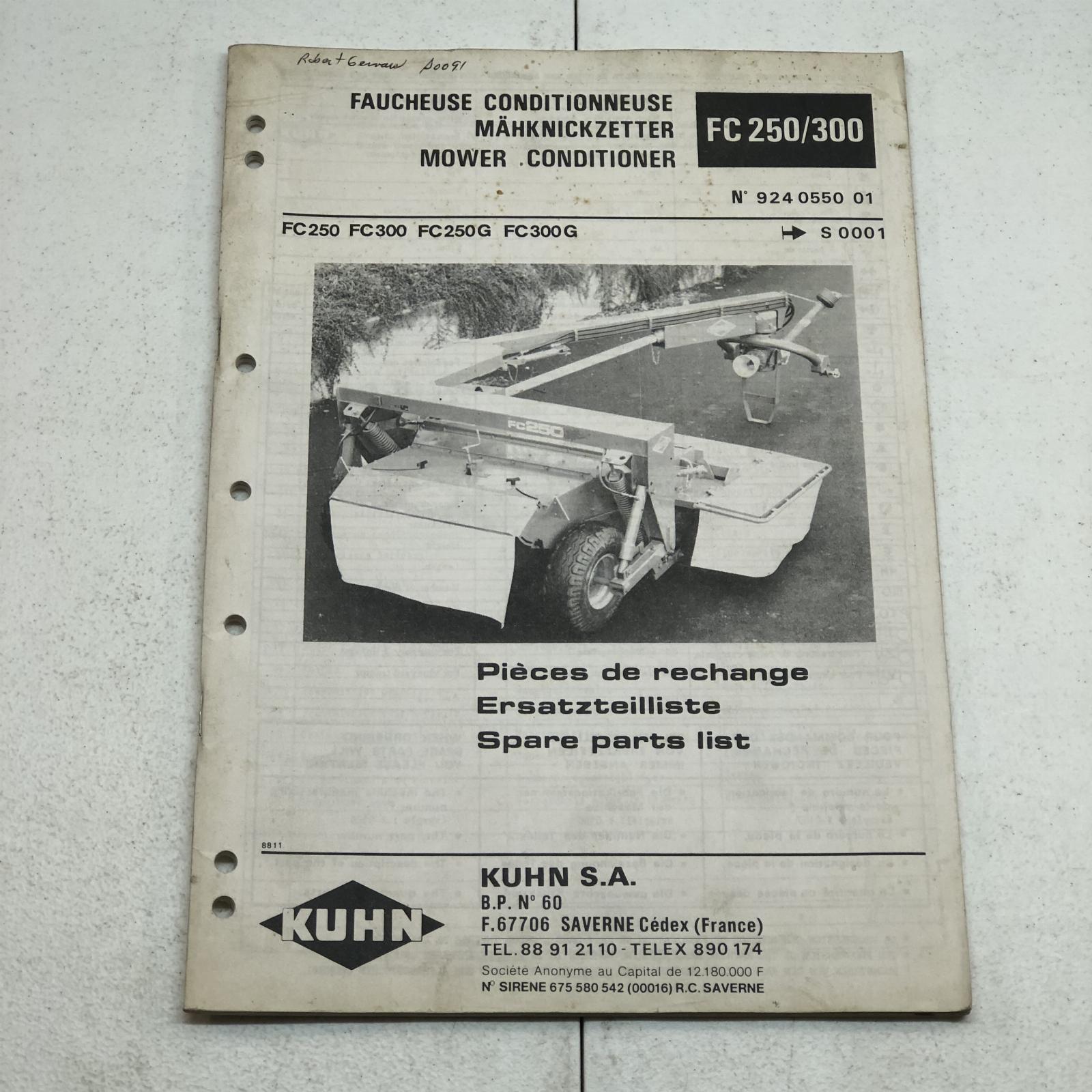 Kuhn FC250 FC300 FC250G FC300G Mower Conditioner Spare Parts Manual