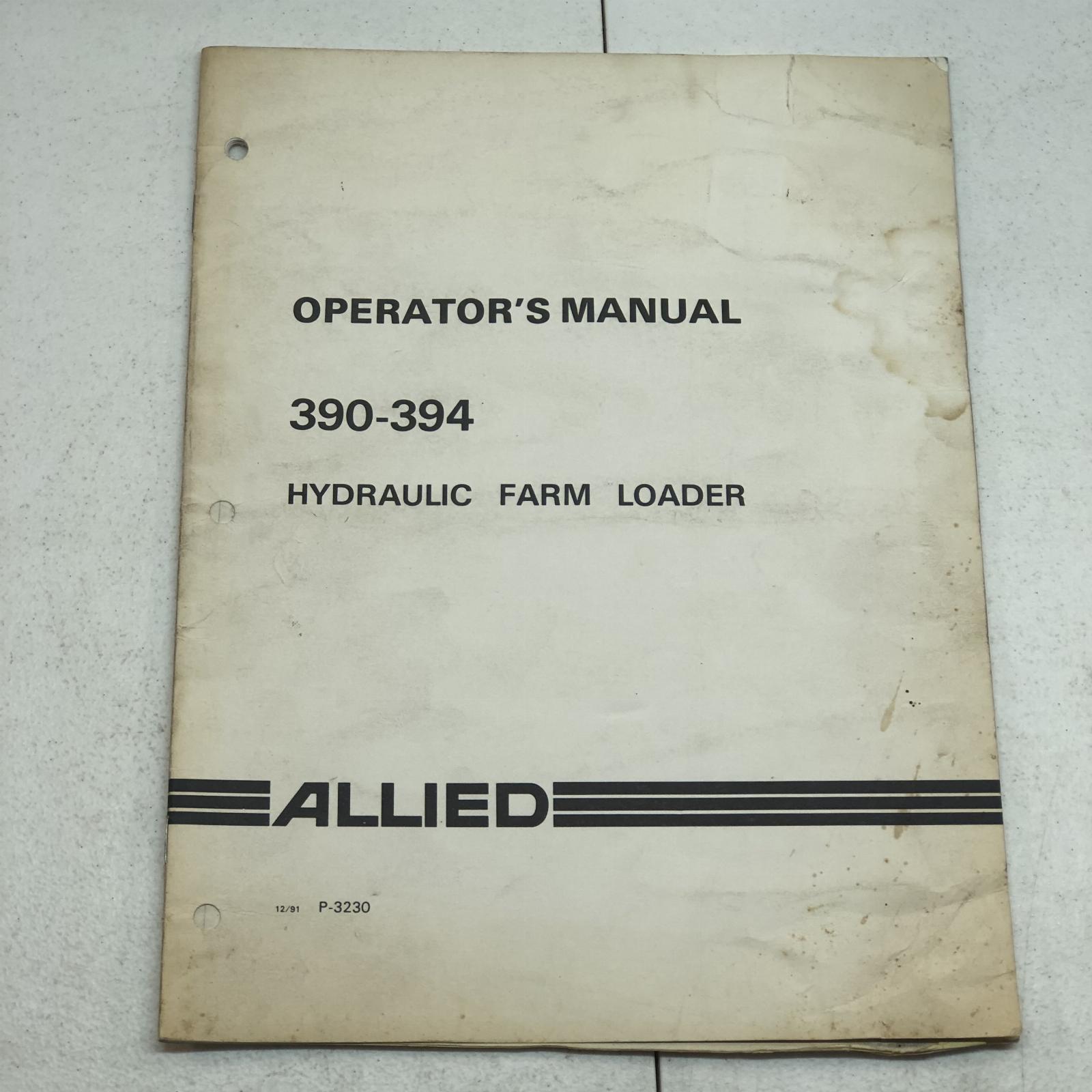 Allied Model 390-394 Hydraulic Farm Loader Parts & Operators Manual