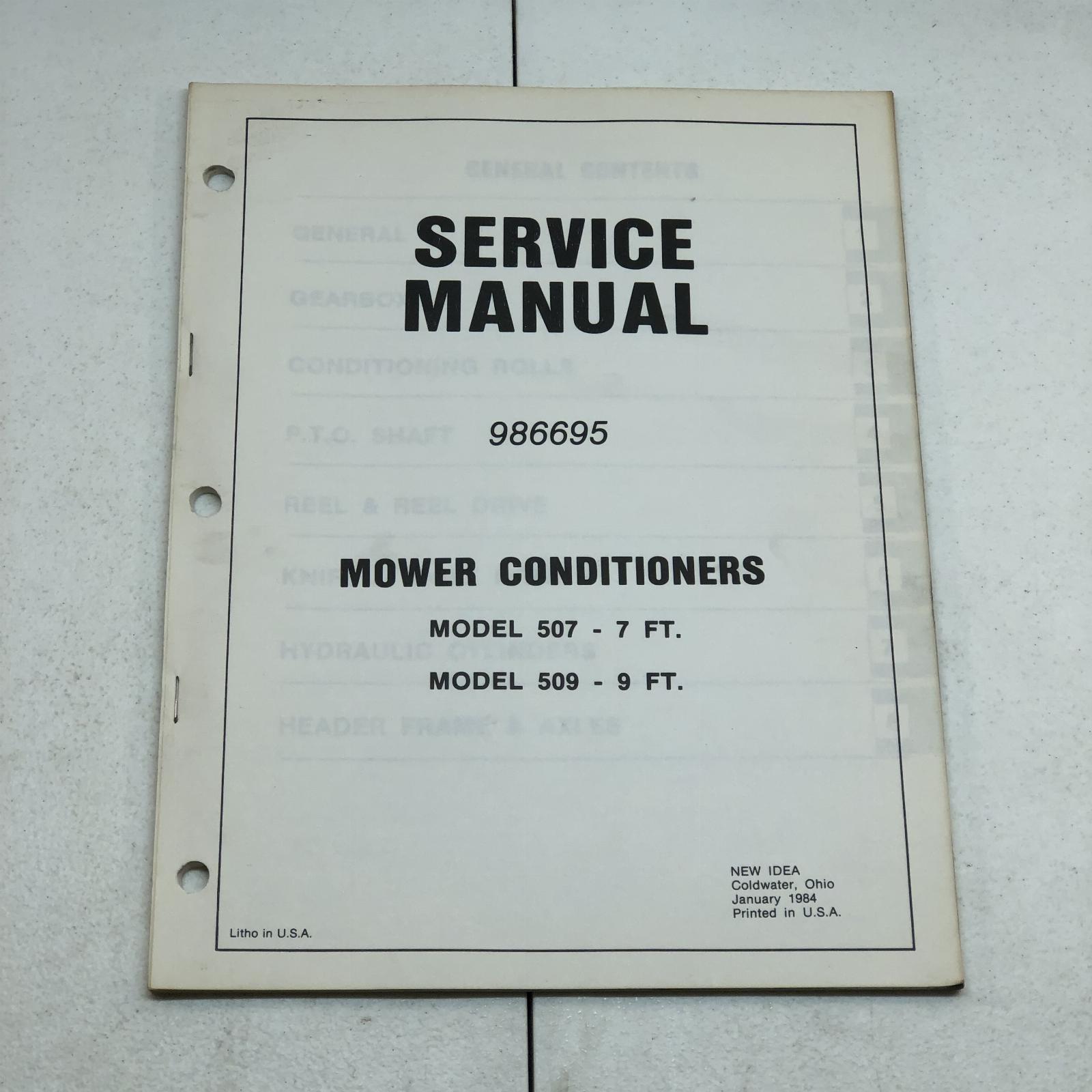 New Idea Model 507 & 509 Mower Conditioners 7ft & 9ft Service Manual