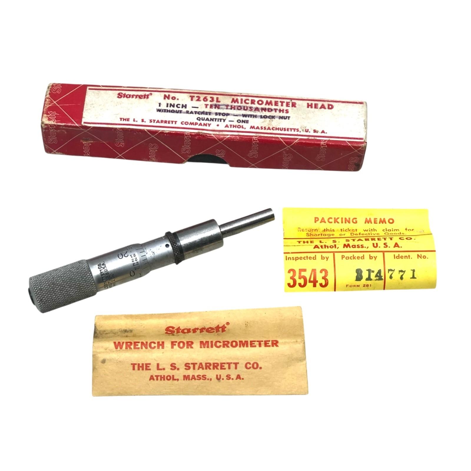 Starrett No. T263L Micrometer Head 0-1" With Locking Nut .0001" Graduations