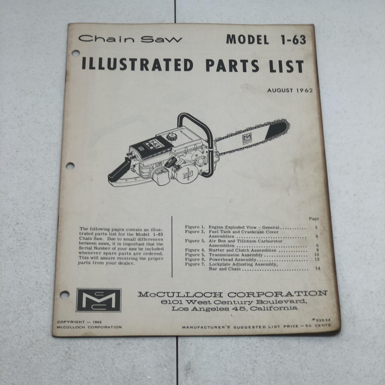 Mcculloch Model 1-63 Chainsaw Illustrated Parts Manual