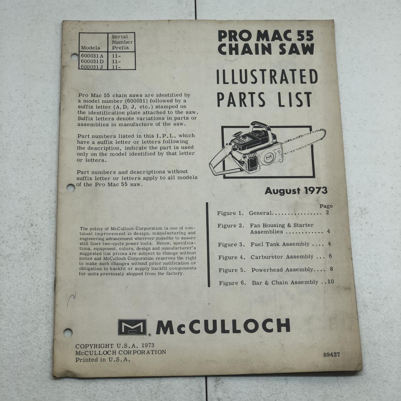 Mcculloch Pro Mac 55 Chainsaw 600031 A D & J Illustrated Parts Manual