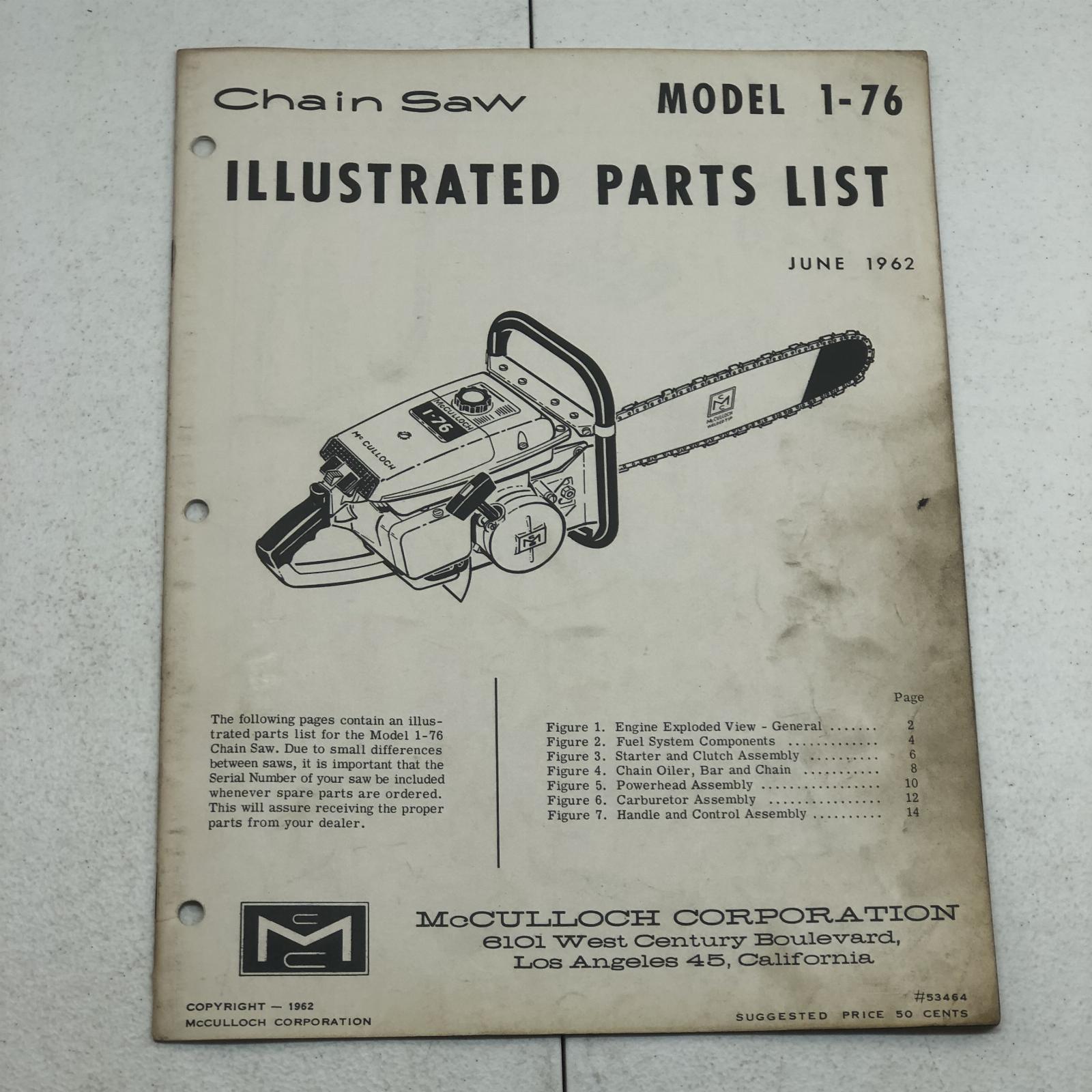 Mcculloch Model 1-76 Chainsaw Illustrated Parts Manual