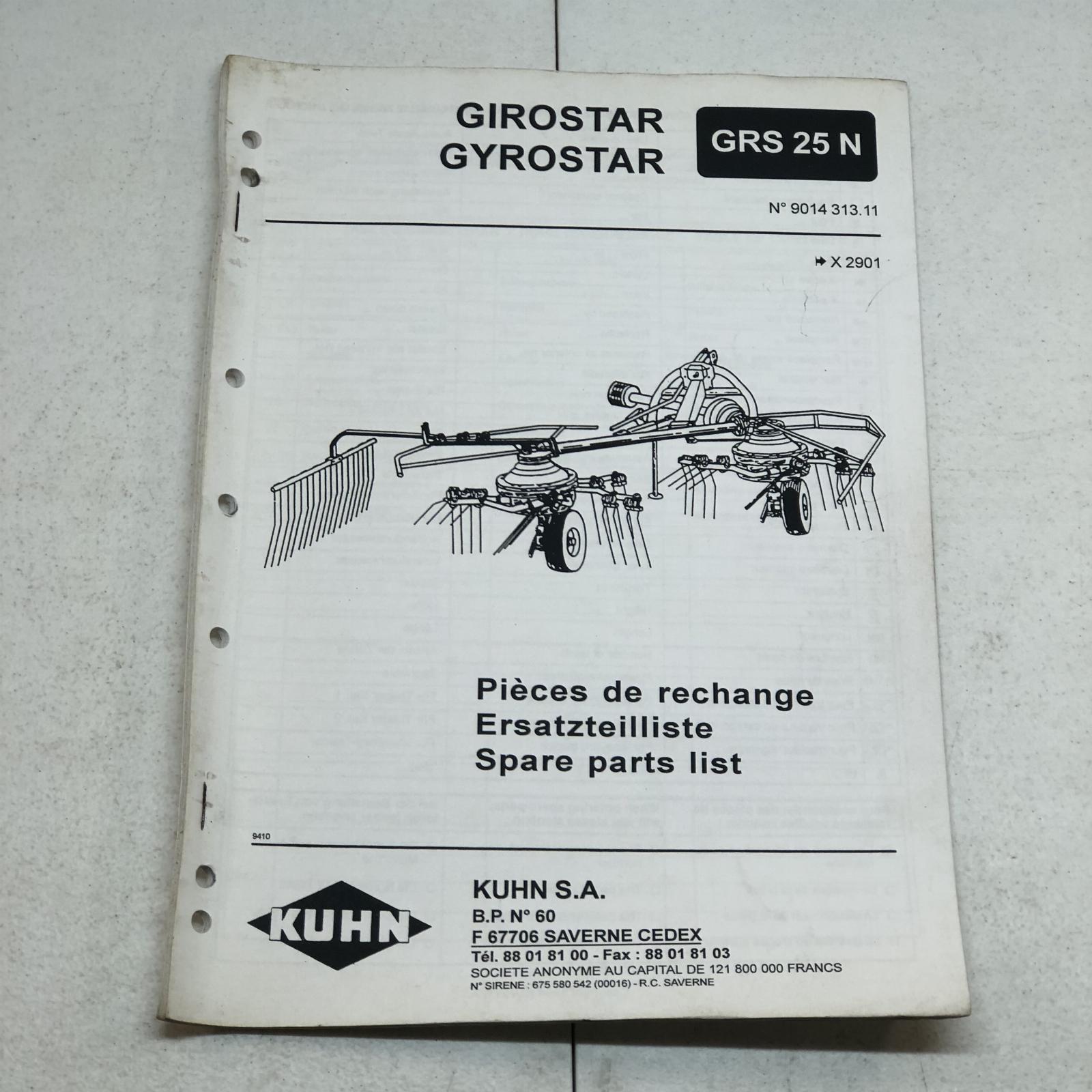 Kuhn GRS25N Gyrostar Hay Tedder Parts Manual