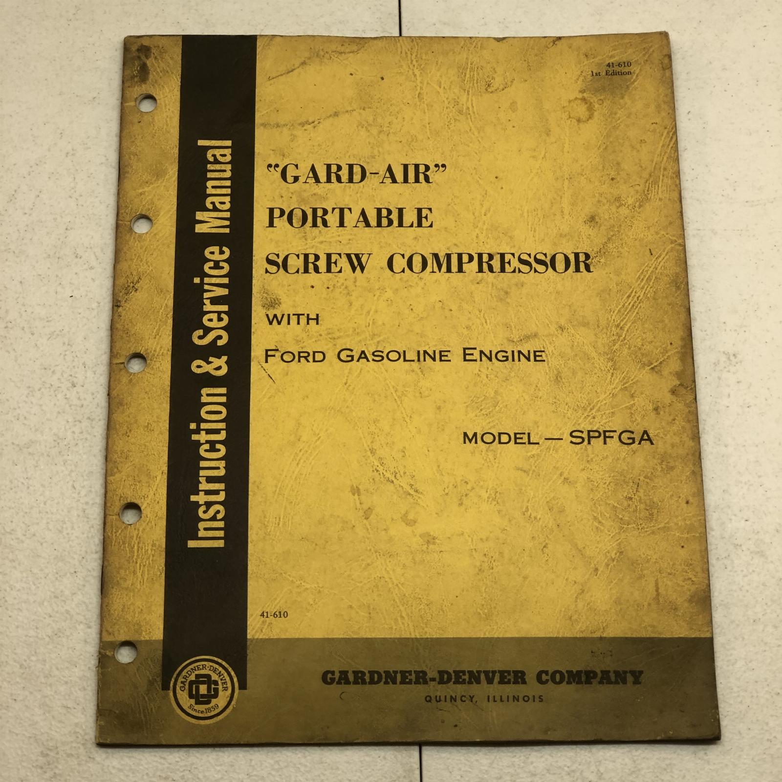 Gardner-denver Spfga Portable Screw Compressor W/ Ford Gas Service Manual