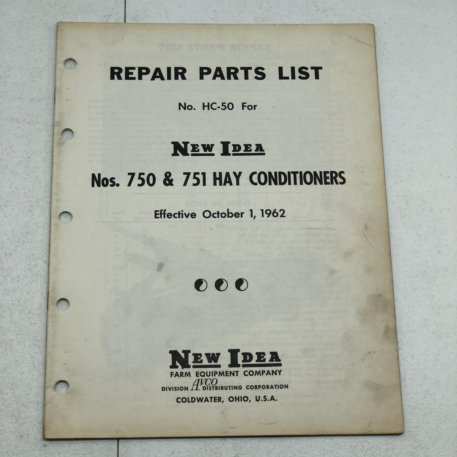 New Idea No. 750 & 751 Hay Conditioners Parts Manual