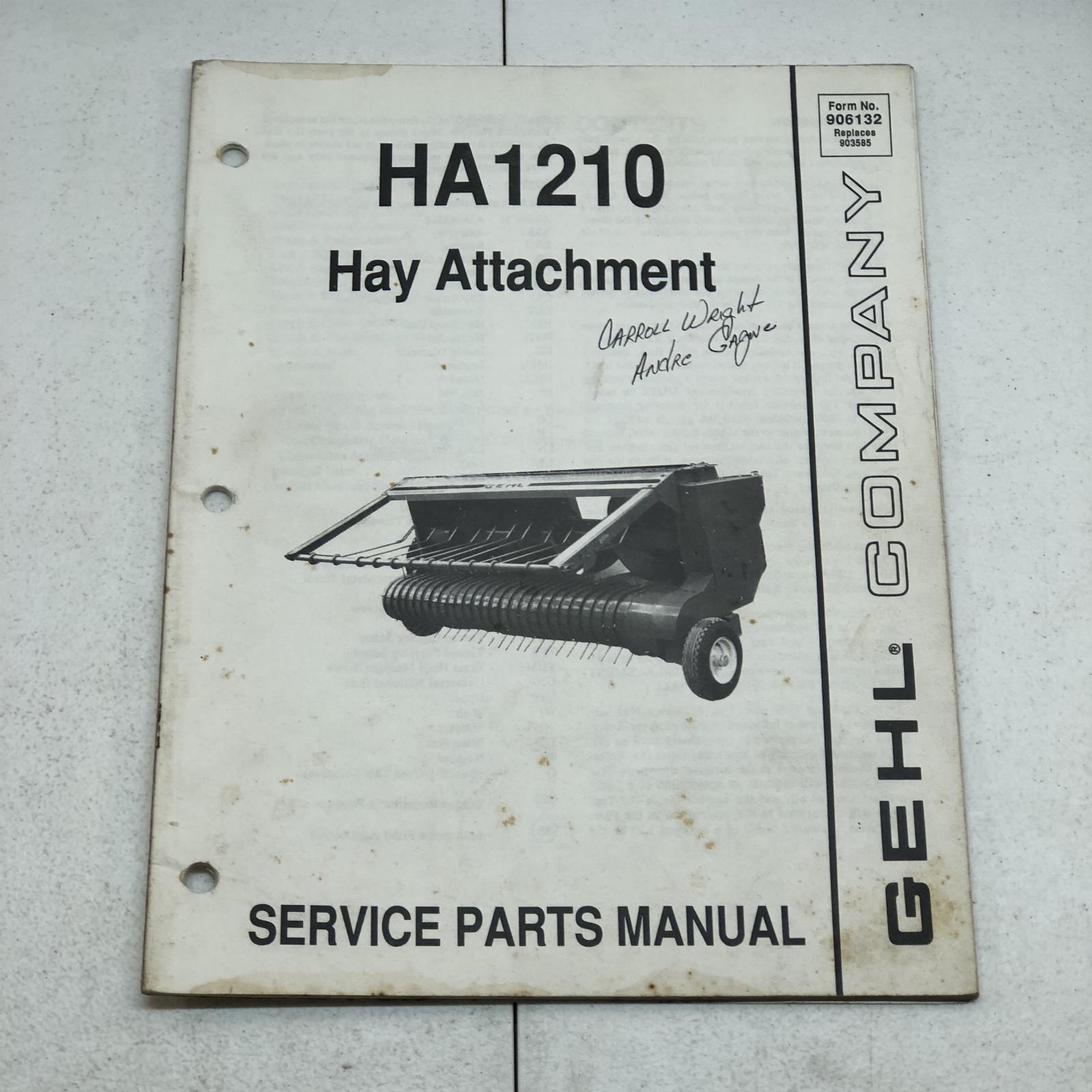 Gehl HA1210 Hay Attachment Service Parts Manual