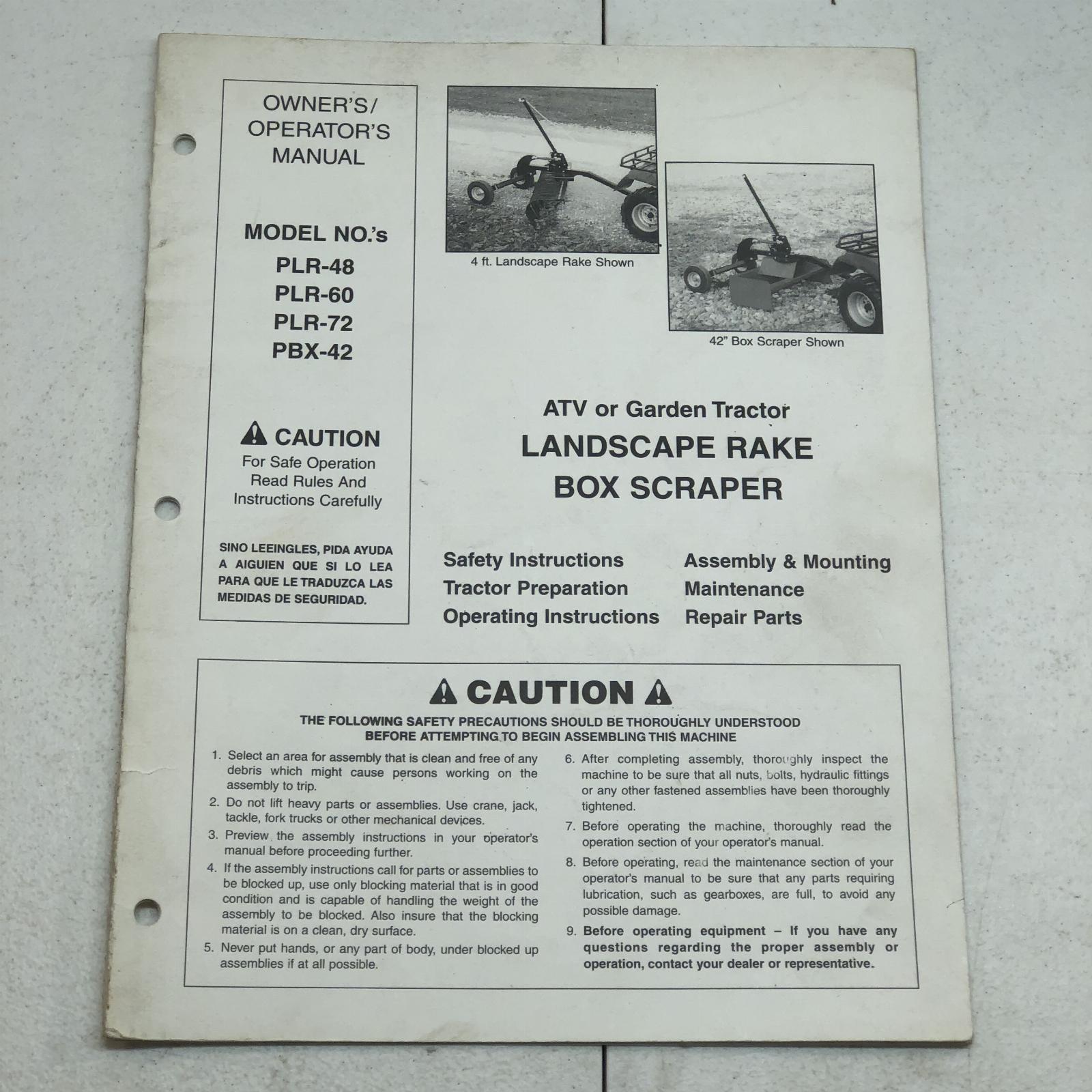 Worksaver PLR48 60 72 Atv / Garden Tractor Landscape Rake & Operators Manual