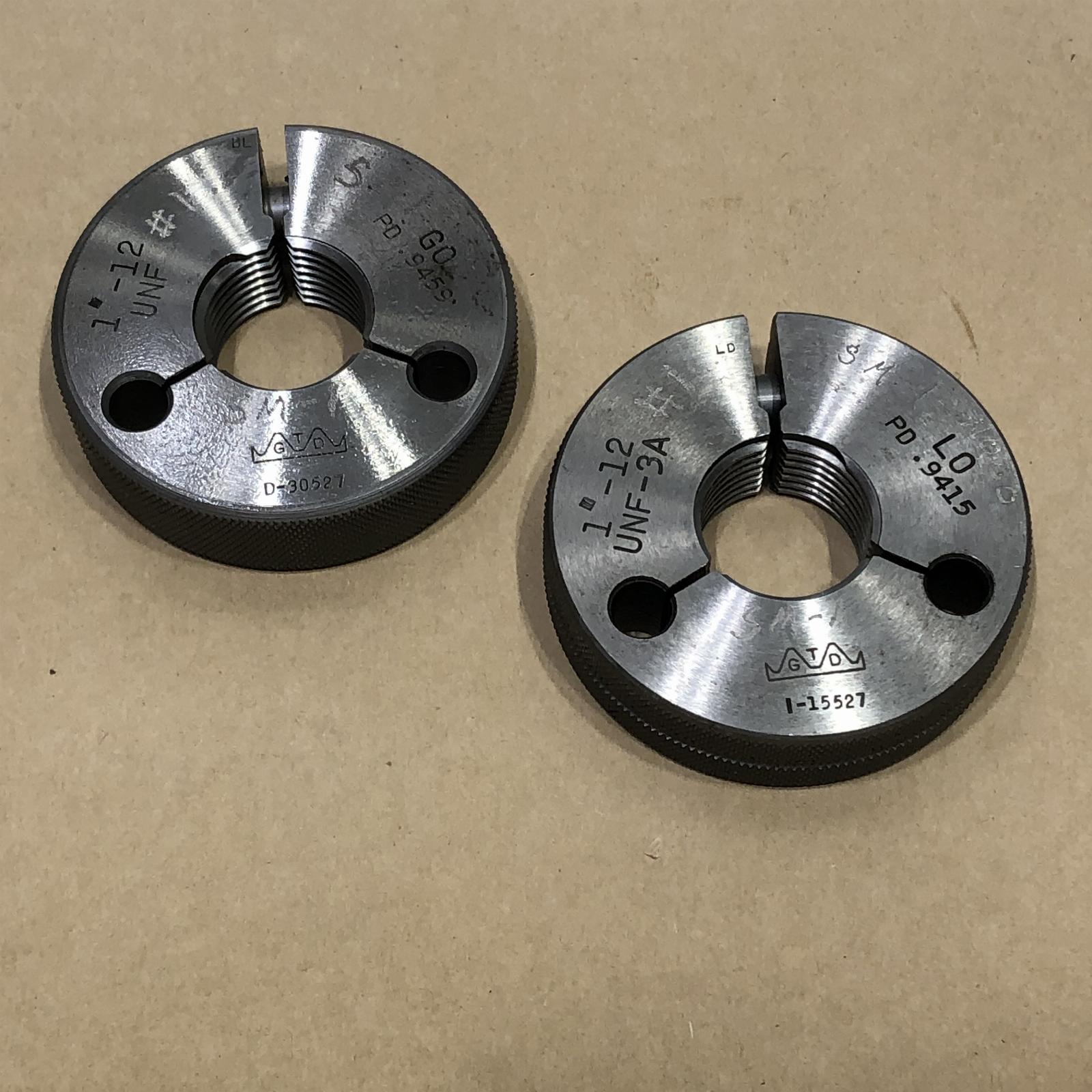 Greenfield Thread Ring Gage Set 1”-12-UNF Go Pd .9459 & No Go Pd .9415