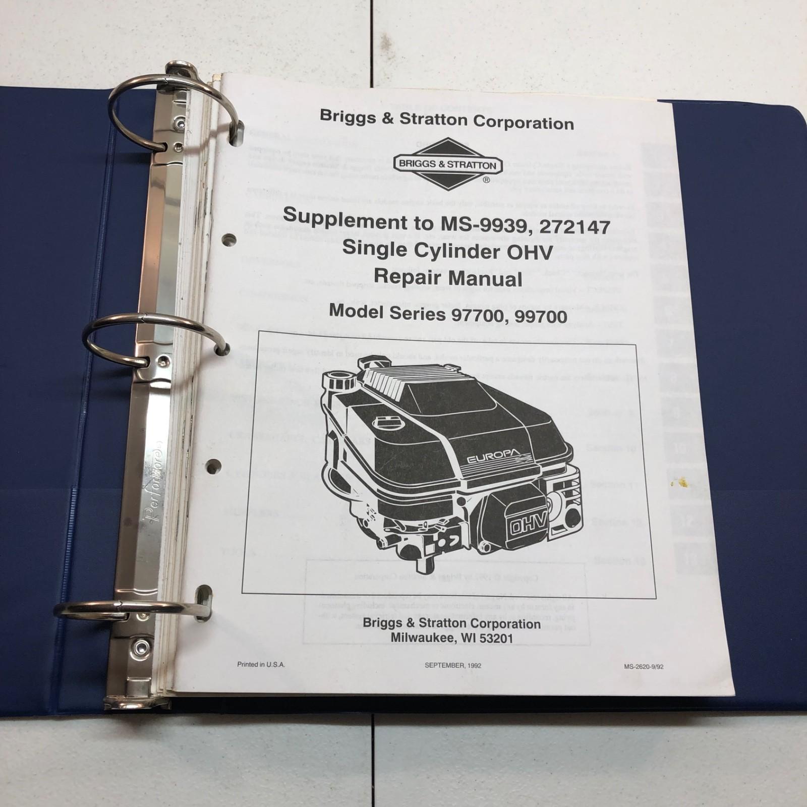 Briggs & Stratton MS-9939 Single Cylinder OHV Series 97700 99700 Service Manual